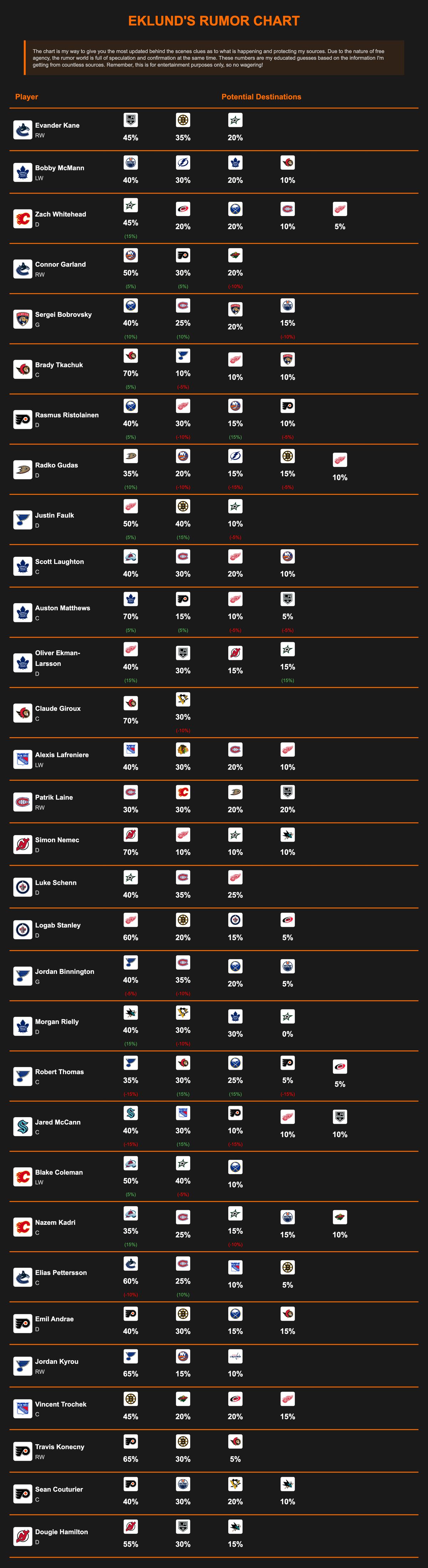 Fully Updated Rumor Chart