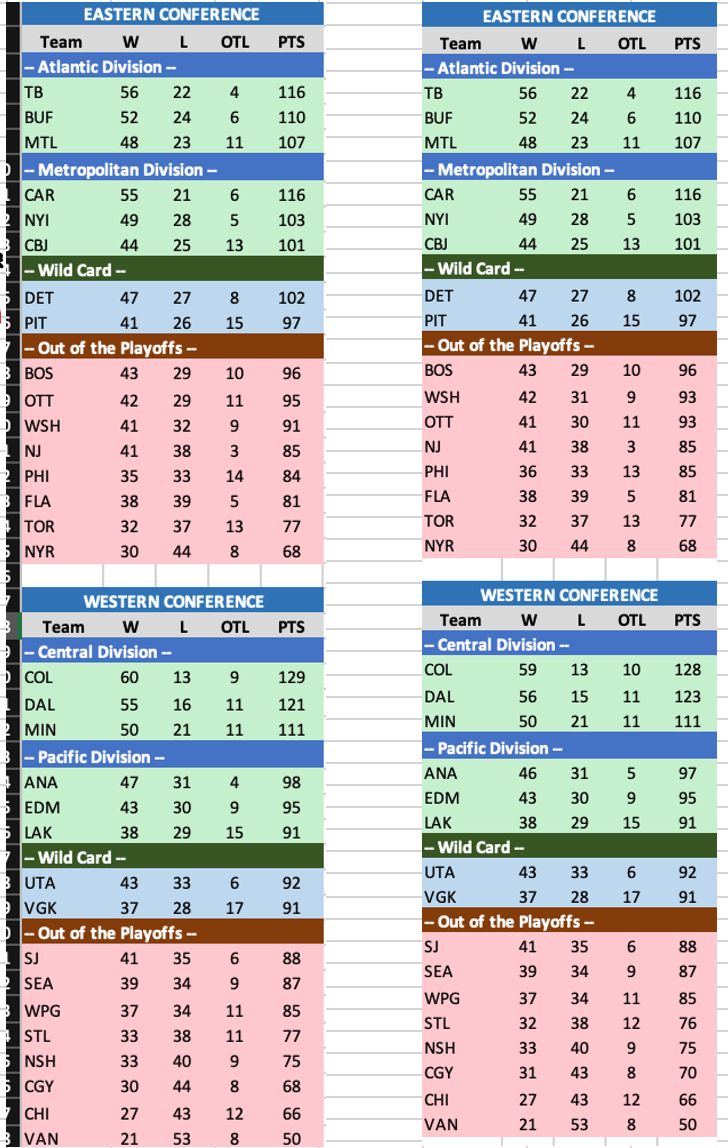 THE HOCKEYBUZZTRON 3000,  Projected Standings.